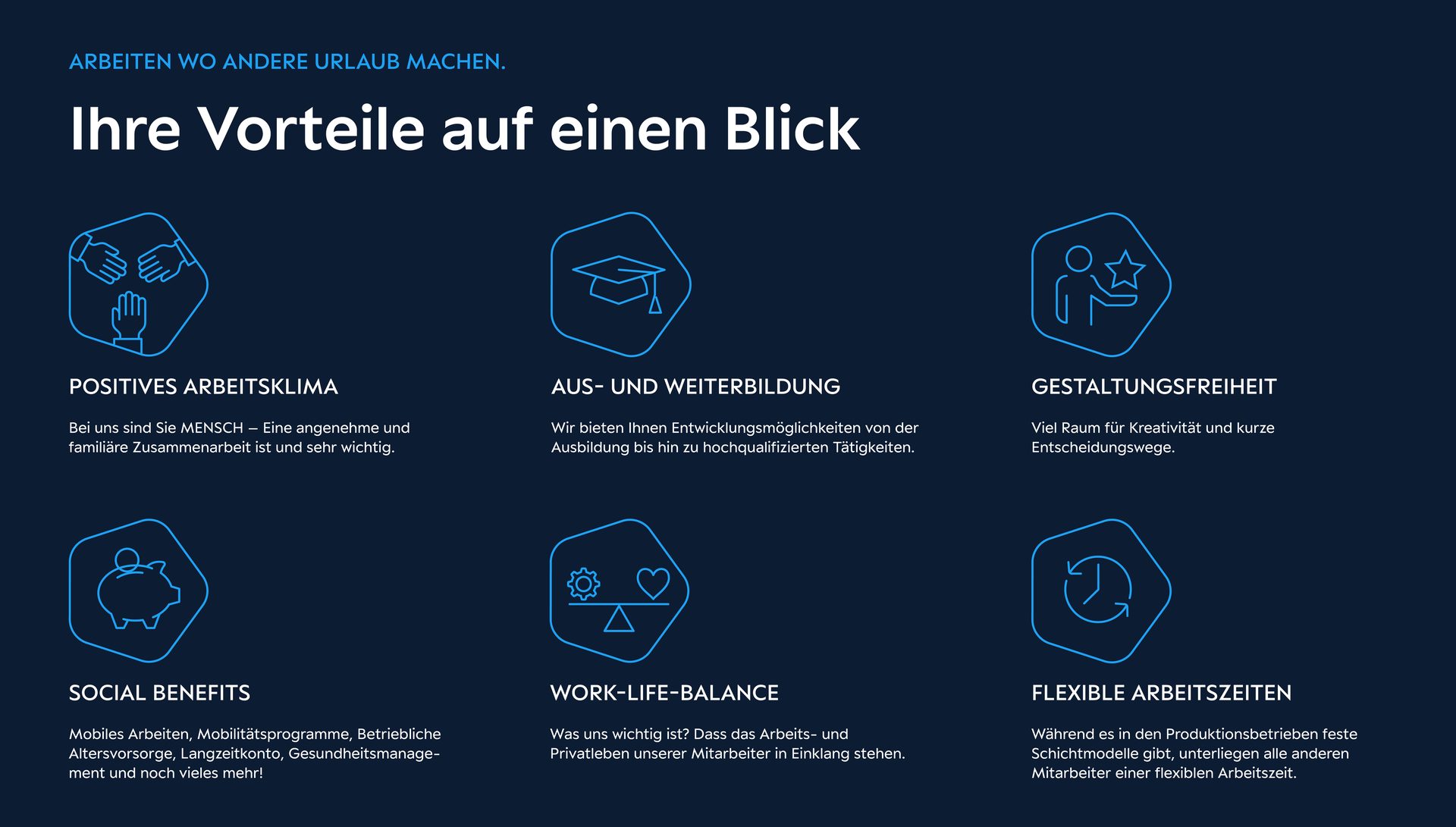 Wir sind ein großes mittelständisches Unternehmen mit einer schlanken Verwaltung. Dadurch können wir einerseits eine sehr persönliche Arbeitsatmosphäre schaffen und andererseits schnell und flexibel agieren. Kurze Entscheidungswege und ein angenehmes Betriebsklima prägen uns als attraktiven Arbeitgeber der Region.